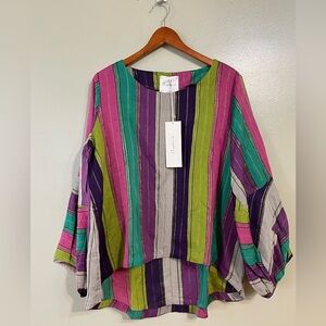 Chapter 2 Colorful Striped Women's Top Hand woven Silk Bland Boho Festival L NWT