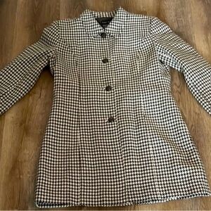 Stylish houndstooth patterned coat with button closure. Perfect for a chic look.