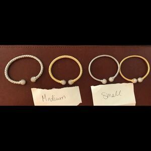 Char LaLa Designs Sterling Silver & Gold Plated Braided Cuff with Pave White Topaz Sphere Tips.