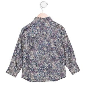 Boys' multi-color Charabia long sleeve shirt with pattern throughout, pointed collar and button closures at center front. Hand wash only.