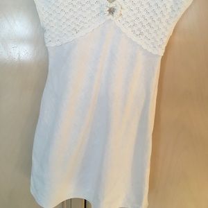 Charabia Paris - White Girls Dress Embroidered Top with Flower and Silver Bead embellishment. The bottom is linen or linen like material (no fabric tag) The dress can be machine washed. Side Zipper. Size US 4A / USA size 5. Can be worn casual or on that special occasion. Smoke and Pet Free Home.