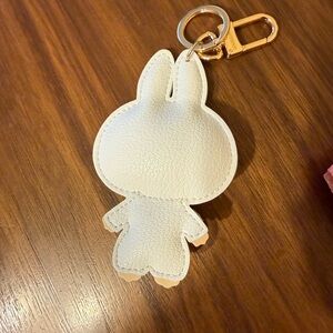 Adorable character keychain featuring multicolor accents. Perfect for adding a playful touch to your accessories. Taken out of bag for photo.