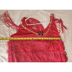Charades Dress Red Fringe Womens 1x Flapper Style With Gold Sequin Scoop Neck