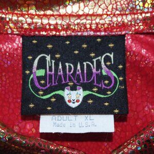 Charades Men's XL Vintage Metallic Foil Psychedelic Animal Print Disco Button Up