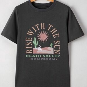 Elevate your casual wardrobe with this stylish charcoal tee featuring a 'Rise With The Sun' graphic. Ideal for everyday comfort and style.