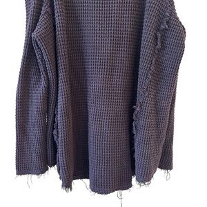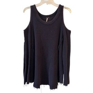 Charcoal Gray Free People Cold Shoulder Waffle Knit Top Large
