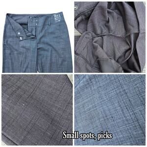 Lightweight stretch fabric in a charcoal Grey plaid pattern. Button/zip/hook & bar closure, 2 front pockets, 2 rear pockets, unlined. Bootcut silhouette, signature fit. Issues noted in photos. Size 6 Average by New York & Co 7th Avenue Suiting Collection Line.
