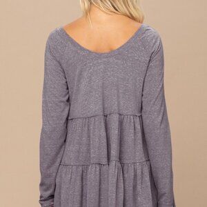 Charcoal Grey Babydoll Tiered Long Sleeve Top
