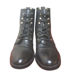Charcoal Lace-Up Ankle Boots with Textured Upper