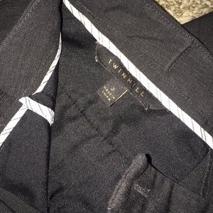 Comfortable waist, easy to iron, charcoal color. Not black but darker than gray.