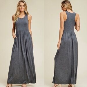 Annabelle Charcoal grey sleeveless maxi dress 95% rayon, 5% spandex