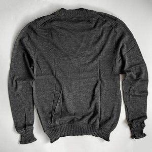 Charcoal and black v-neck Viktor+Rolf sweater, in a wool/silk blend. Not too thick, but just warm enough. Size S (but beautifully fitted as a M).
