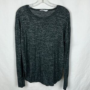 Charcoal heather long sleeve top with round hem, size M