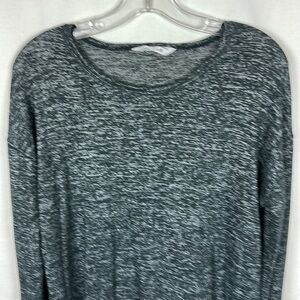 Member’s Mark Soft Heather charcoal long sleeve top with round hem, size M. Good preowned condition. Super soft snd comfy. Black and charcoal gray heather. 6” side slits. High low style.