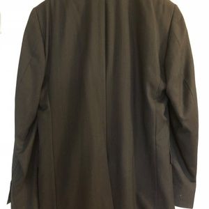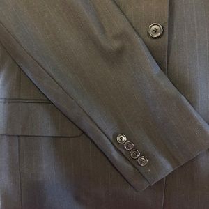 This suit has been slightly taken in in the lower small of the back, sleeve length currently for a 34/35 in dress shirt, and pants hemmed to a 34 length. 100% wool.