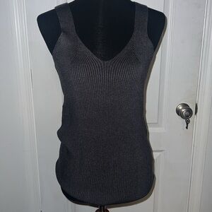 Charcoal sweater tank Knit Pullover tank grey large top Casual vneck dressy