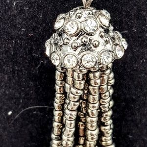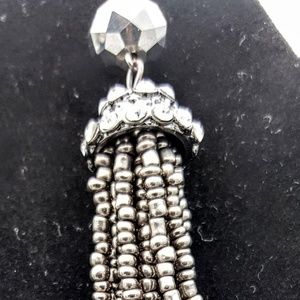 Grey/charcoal-colored seed bead and crystal earrings. Length is a tad bit over two inches and can be worn dressy or casual - always elegant!