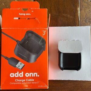 ONN. CHARGE CABLE. Compatible with FITBIT VERSA 2. Black. 3'. In Box. Box has a little damage, see pics, from my opening, but Charger is practically Brand New. Bought, Miss Placed, Bought Another, and then I Found the First One Lol. Excellent Condition. 10/9