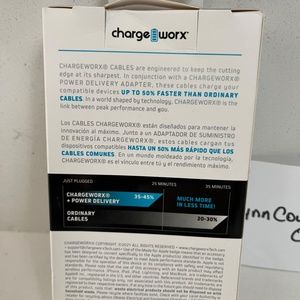 Charge Worx Power delivery Lightening to usb cable Charge Iphone 50% in 30 NEW!