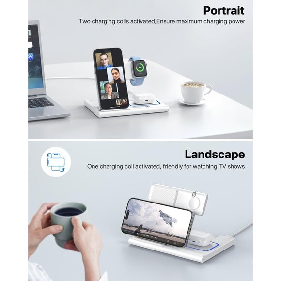 The wireless charging station for multiple devices apple offers fast charging for your iphone at home, in the office and on the go due to its compact and folding design.