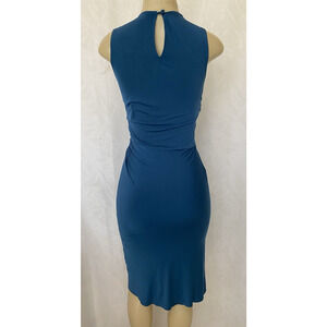 Charina Sarte Dress Ruched Sheath Crew Neck Sleeveless Draped Teal Blue …