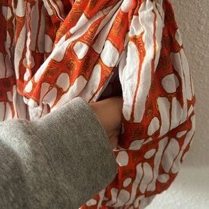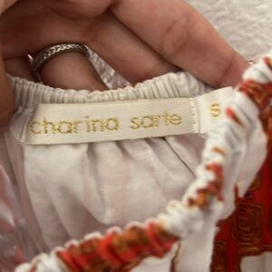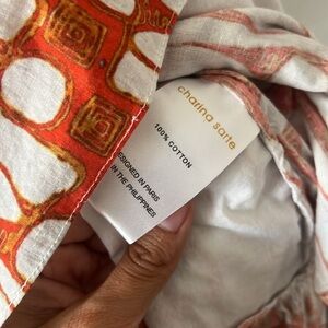 Charina Sarte Ruffle Tala Mini Dress | Print/Orange/ White/ Brown | Size Small