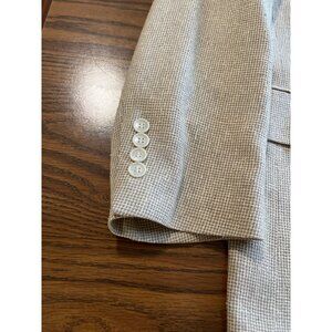 Charing Cross tan pure silk featherweight two button dress jacket size 44 Long. Has two faux front pockets. Inside left has two pockets. Inside right has one pocket. Back has approximately 10” slit. Each sleeve has four buttons. Made in Poland. Good pre-owned condition.