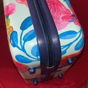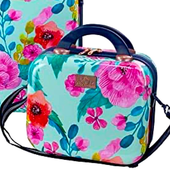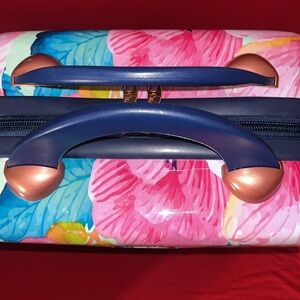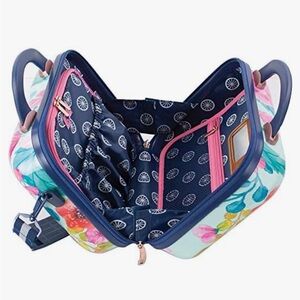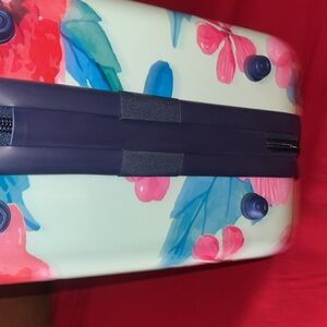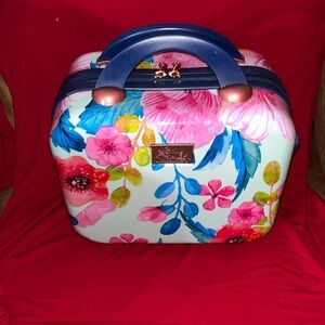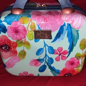 Like New Beauty Case expandable Vibrant floral print travel bag with a mix of pink, red, and green colors. Perfect for stylish travel. See photos great buy.