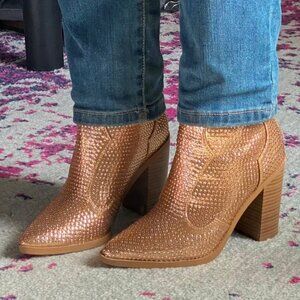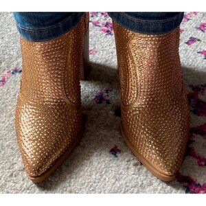 Chariot & Co Gold Rhinestone Cowboy Boots Stacked Heel Wyatt Ankle Boot 6.5 NEW!