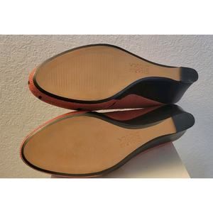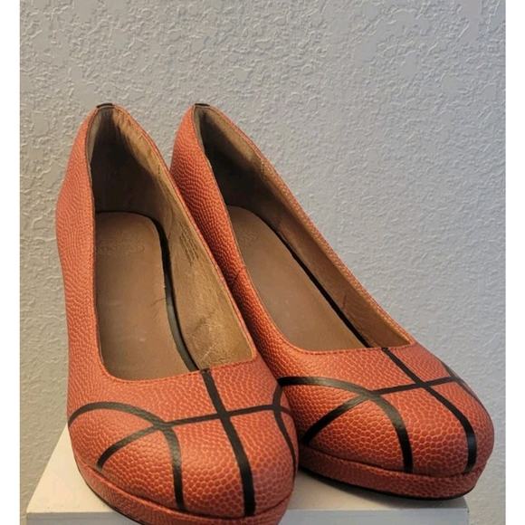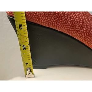 Charis & Doxa Basketball Wedges Womans Sz. 8 W Leather Real Basketball Material. These are great for the basketball lover. Wear to games or awards. Super fun and comfortable. See pictures for heel height. These shoes were used as a display model.