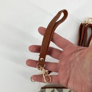 Charis Ma Womens Printed Black White Brown Crossbody Bag Wristlet New 8.5 x 6