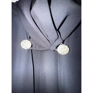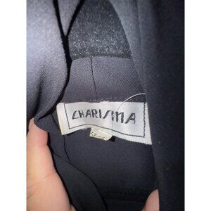 This elegant vintage cape by Charisma evokes a sense of timeless sophistication. Crafted from lightweight polyester, it drapes beautifully around the shoulders, fastened with exquisite rhinestone buttons. Its understated black hue makes it versatile for various occasions, while the flowing silhouette adds a touch of classic glamour.