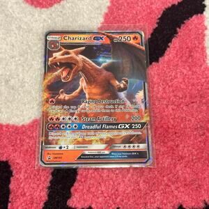 Authentic Charizard GX #SM195 from the Pokémon Sun & Moon Promo series. Features the iconic Fire-type Pokémon in vibrant GX artwork with full promo detailing. Condition is as pictured; please review photos for edges and surface. Perfect for GX collectors, Charizard fans, or those completing the Sun & Moon promo set.