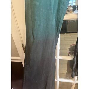 Charizma Womens Ombre Pull On Wide Leg Scallop Hem Pants Teal Black Size L. H