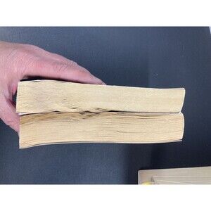 water damage and one of those books has tiny holes that go through the back