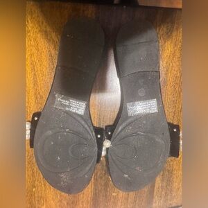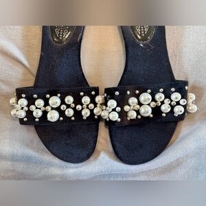 Charles Albert Black Velvet Pearl Embellished Slide Flip Flop Sandal Sz 9