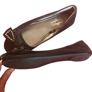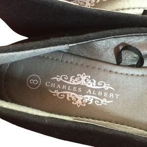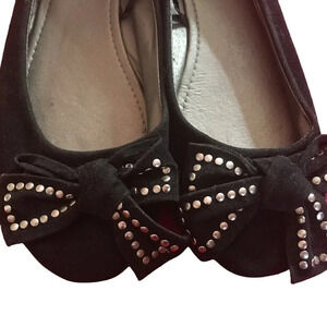 Charles Albert Flats, Size 8, Black Faux Suede, Studded Bows, Like New