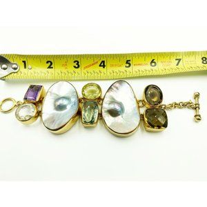 Charles Albert Mabe Blister Pearl & Multi Gemstone Toggle Bracelet preowned. Shipped with USPS First Class Package.