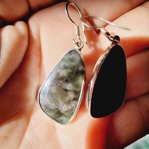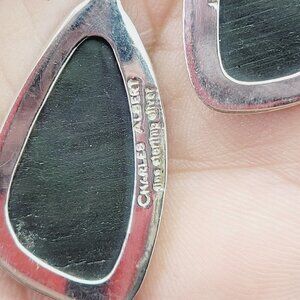 Charles Albert Rainbow Obsidian Earrings Drop Dangle 950 Fine Sterling SilverSigned on the back