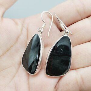 Charles Albert Rainbow Obsidian Earrings Drop Dangle 950 Fine Sterling Silver
