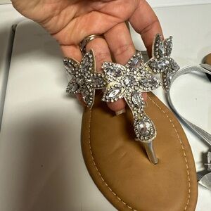 Stylish silver sandals with sparkling details. Ideal for any event.