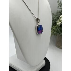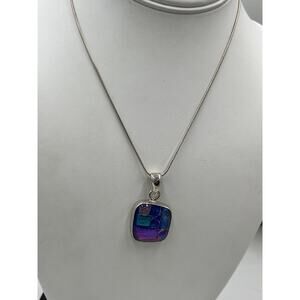 This is a beautiful sterling silver Charles Albert Sterling Silver Dichroic Glass necklace. All Dichroic glass is one of a king pieces of artwork. The pendant is 1.5" tall.