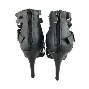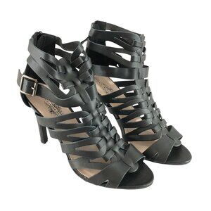 Charles Albert Stiletto Heels Faux Leather Gladiator Cage Peep Toe Black 9