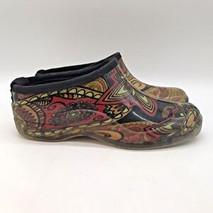 Charles Albert Waterproof Garden Clogs. Women's size 7, Low Top, Slip On, Fleece Lined, Rain Boots. Nice Tribal Design on these Comfy Shoes. Only worn a couple times.