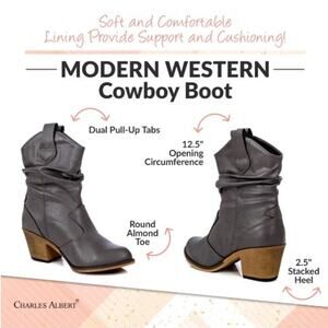 Charles Albert Western Ankle Boots Sz 6 Cowgirl Black Heels Pull On