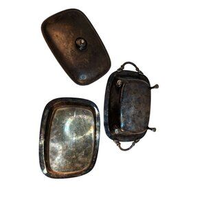 This elegant silver-plated serving dish exudes timeless sophistication, ideal for enhancing dining experiences. The rectangular design with ornate handles and a classic lid adds a touch of vintage charm. Its lasting shine and sturdy construction make it a valuable addition for those who appreciate antique tableware.