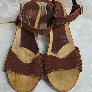 Charles By Charles David Brown Suede Wooden Platform Sandals