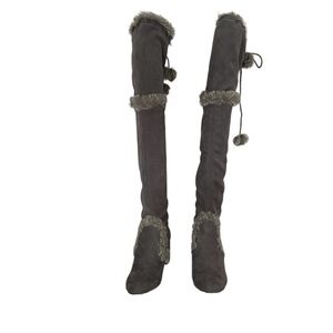 Gray Charles By Charles David Faux Fur Trimmed Over-the-Knee Boot