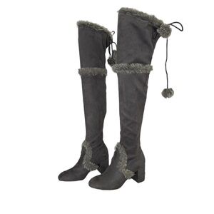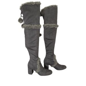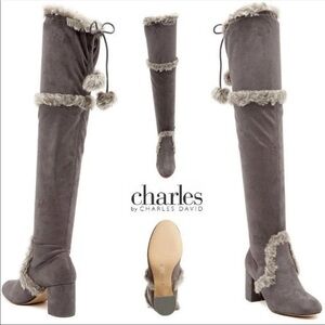 Charles By Charles David Grey Faux Fur Trimmed Over-the-Knee Boot