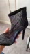 Lucite, rhinestone & mesh fabric upper